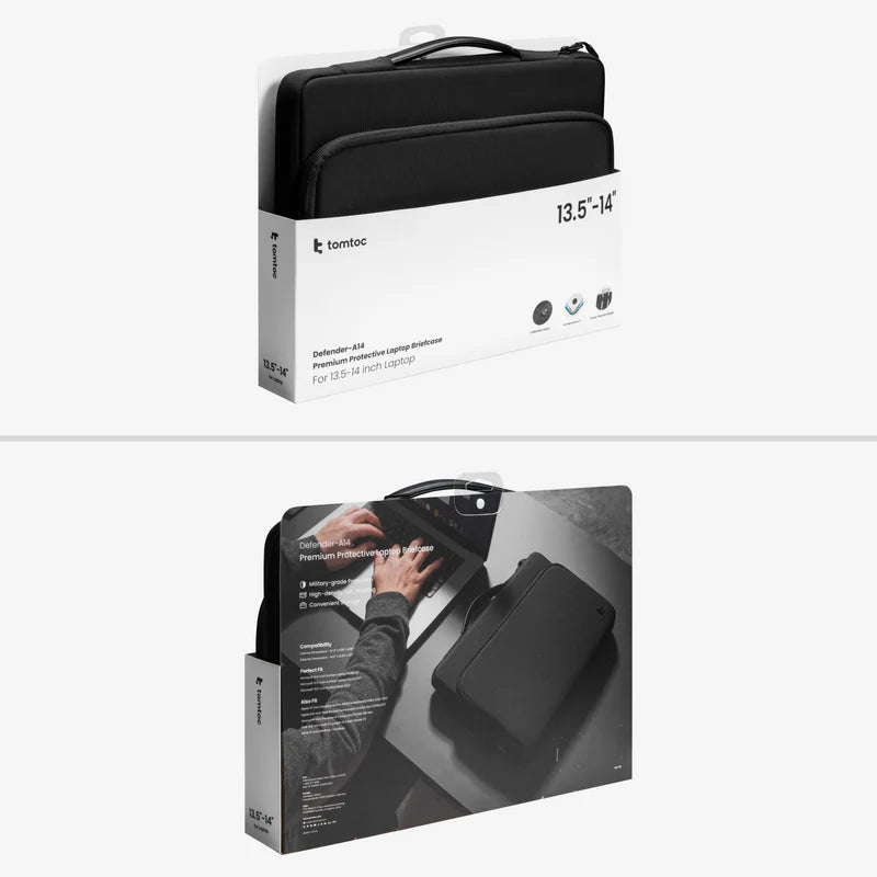 Combining elegance and clarity, tomtoc Defender-A13 packaging highlights the product’s premium features with clean visuals and informative details—perfect for showcasing its quality at first glance.